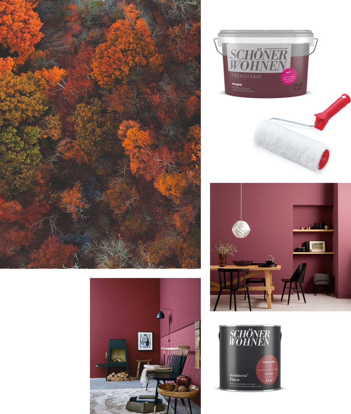 Mit leuchtendem Rot setzen Sie zu Hause energiegeladene Highlights. Wenn Sie größere Flächen gestalten möchten, empfehlen wir Ihnen das angesagte Weinrot unserer Trendfarbe Napa oder Södermalm aus der Architects’ Finest Kollektion. Die Rottöne passen perfekt zu natürlichen Materialien wie Holz und Leinen und lassen jeden Raum gleich um ein paar Grad wärmer erscheinen. Sie tendieren sanft ins Behaglich-Dunkle, dimmen das Licht und sind damit das Rezept für ein gemütliches Zuhause, in dem man zur Ruhe kommt.