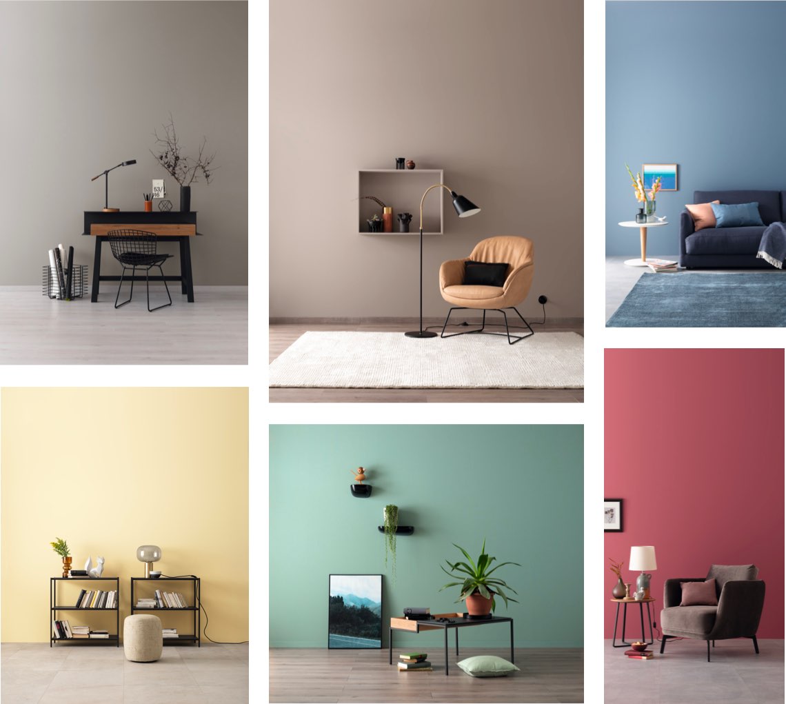 Zeitlose Grautöne, harmonische Brauntöne, aufmunternde Gelbtöne, leidenschaftliche Rottöne, inspirierende Blautöne und erholsame Grüntöne – insgesamt stehen Dir 30 Farbtöne zur Verfügung, um Deinen ganz persönlichen Wohntraum wahr werden zu lassen.