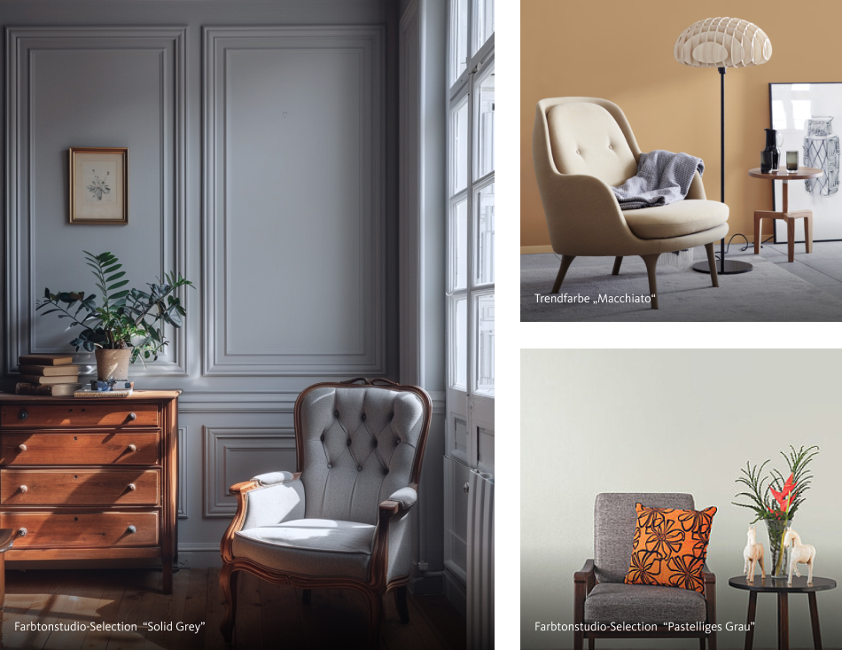Ebenso findest Du bei unseren Trendfarben viele Farbtöne, die eine klassische Ausdruckskraft besitzen. Macchiato zum Beispiel ist der perfekte Partner für Wohntextilien in Gelb- und Orangetönen.