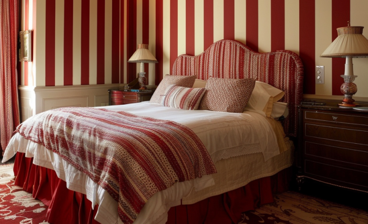 Man kennt sie von englischen Landsitzen und Strandhäusern am Meer: Streifen an den Wänden stehen einfach für klassischen Charme. Horizontale Streifen verleihen Räumen Weite und lassen sie luftiger erscheinen, während vertikale Streifen Decken höher wirken lassen und Räume optisch strecken. Gut zu wissen: Je feiner die Streifen, desto eleganter wirkt die Wandgestaltung.