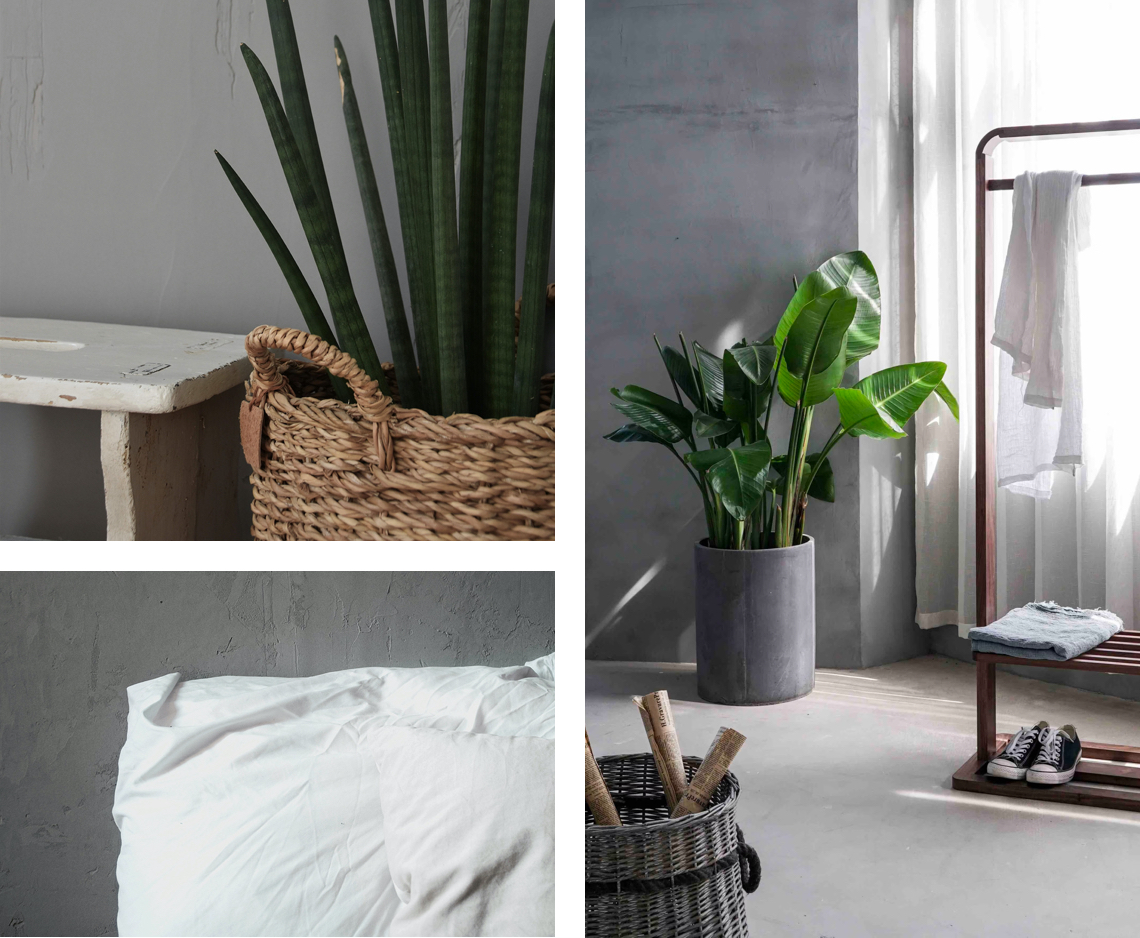 Der besondere Charme von Beton entsteht durch eine gewisse Unvollkommenheit der Oberfläche. Dort zeigen sich häufig mechanische Spuren und Ausbrüche (auch „Lunker“ genannt), die durch die Verschalung beim Gießen von Wänden oder Objekten entstanden sind. Das Zusammenspiel aus lebendiger Optik und rauer Haptik ist alles andere als langweilig. Außerdem bildet der typische Grauton von Beton eine ruhige Basis, die andere Farben und Einrichtungsgegenstände besonders wirkungsvoll in Szene setzt.