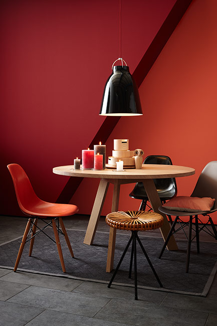 Rot zieht alle Aufmerksamkeit auf sich und dominiert, wenn man es mit anderen Farben kombiniert. Auf großen Flächen kann Rot geradezu dramatisch wirken. Falls Du also nach einer effektvollen Akzentfarbe suchst, ist Rot die richtige Wahl.