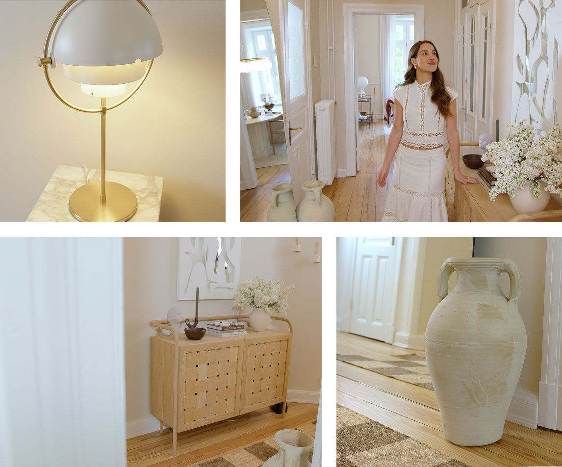 Der Gesamtlook von Johannas Wohnung ist eher reduziert. Korb, helles Holz und Jute stehen für Natur; Marmor und goldfarbenes Metall sorgen für eine edle Note. Diese Mischung aus mediterraner Wärme, nordischer Klarheit und entspannter Eleganz überzeugt auf den ersten Blick.