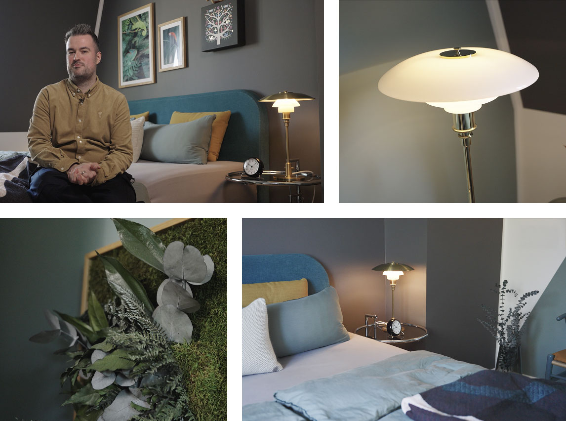 Nicht nur in diesem Raum kommt Mikes Talent für die Gestaltung mit Licht voll zur Geltung. Er weiß ganz genau, wie er Licht gezielt einsetzen kann. Statt auf eine einzige Lampe oben an der Decke, setzt Mike auf die Kombination verschiedener Leuchten, die den Raum mit indirektem Licht erhellen. Position der Leuchte, Ausrichtung des Lichtkegels, Lichtfarbe und Helligkeit – all das sind wichtige Elemente einer jeden persönlichen Einrichtung.