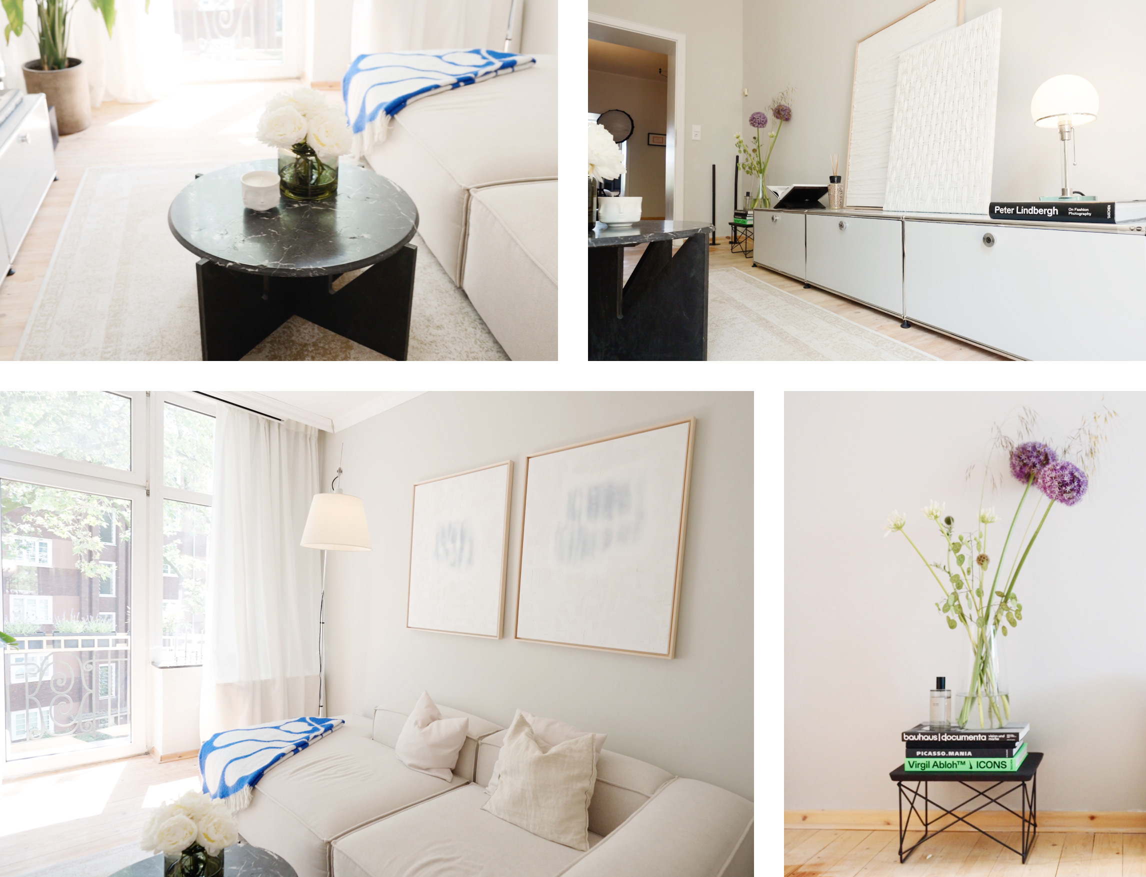 Ein Highlight stellt der Couchtisch dar – noch ein Beispiel für ein DIY-Möbel-Makeover. Die Tischplatte gehörte mal zu einem französischen Bistrotisch. Elisa hat ihn über Kleinanzeigen gefunden, gekauft und dann ein neues Untergestell anfertigen lassen. Dieser Tisch besitzt Charakter und ist auf jeden Fall einzigartig.