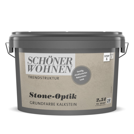 Das Büro erfüllt zwei Aufgaben. Zum einen bietet es zwei Arbeitsplätze und außerdem einen Bereich für Gäste. Um diese beiden Bereiche optisch voneinander zu trennen, hat Elisa die Wand hinter dem Schlafsofa mit der SCHÖNER WOHNEN Trendstruktur Stone-Optik im Farbton Kalkstein gestaltet. Der Clou: Unebenheiten in der Wand mussten vor dem Streichen nicht mal zugespachtelt werden. Im Gegenteil: Sie verstärken den Eindruck sogar noch.