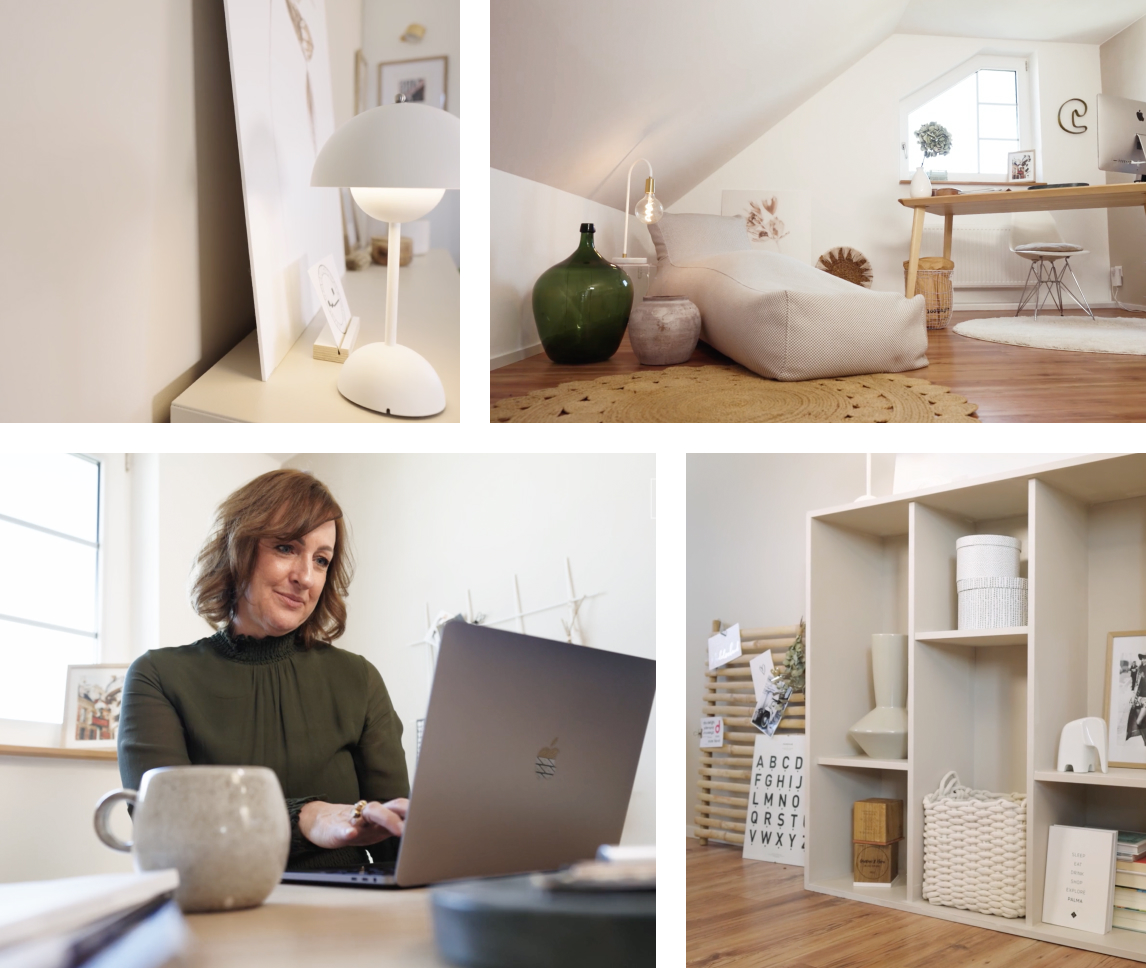 Von ihrem neu gestalteten Homeoffice aus schreibt Miriam Artikel für ihren Blog „Mikas Wohnsinn“ und kümmert sich um ihren Instagram-Kanal. Was die Einrichtung angeht, hat sie sich für den Lagom-Stil entschieden. Lagom hat seinen Ursprung in Schweden und bedeutet so viel wie: Nicht zu viel, nicht zu wenig. Im Homeoffice geht es um die Balance aus Konzentration und Entspannung. Darum hat Miriam die Wände dort mit der Naturell Kreidefarbe Sandbrise gestrichen. Das warme Beige schafft eine Atmosphäre der Ruhe. Diese wird unterstützt durch den Ton-in-Ton-Look: Das Regal hat den gleichen Farbton wie die Wand dahinter. Das funktioniert, weil die Naturell Kreidefarbe auch für Möbel geeignet ist. Dadurch wirkt das gesamte Homeoffice optisch noch ruhiger. So schafft sich Miriam den perfekten Ort, um konzentriert zu arbeiten und zwischendurch den Blick streifen zu lassen für kurze Entspannungsmomente.