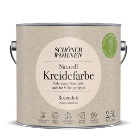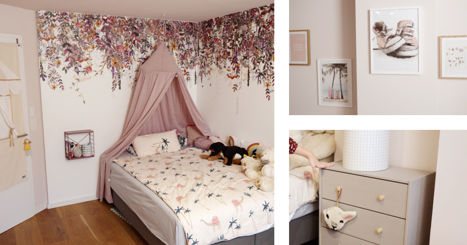 Im Zimmer der Tochter prägt eine auffällige Blumentapete den Raum. Dazu passt der Farbton Rosenduft der SCHÖNER WOHNEN Naturell Kreidefarbe perfekt. Das dezente Hellrosa lädt zum Träumen ein. Besonders gefällt Laura übrigens, dass die Naturell Kreidefarbe konservierungsmittelfrei und damit auch für Allergiker geeignet ist. Damit ist sie perfekt für das Kinderzimmer geeignet.