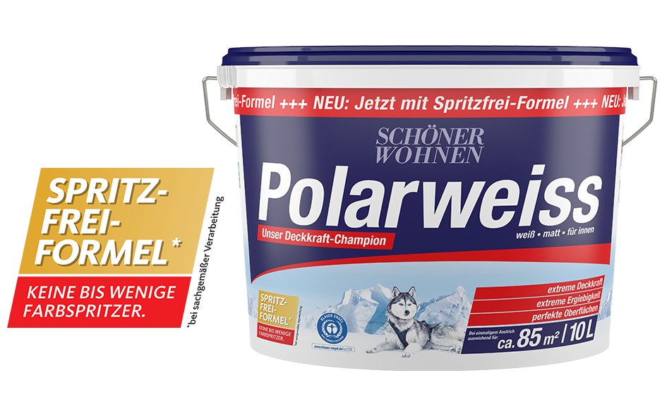 Die spezielle Rezeptur mit Spritzfrei-Formel ermöglicht ein Streichen ohne oder nur mit ganz wenigen Farbspritzern und erleichtert damit Deine Renovierung enorm. Die besten Ergebnisse erzielst Du dabei mit dem Polarweiss-Profiroller.
