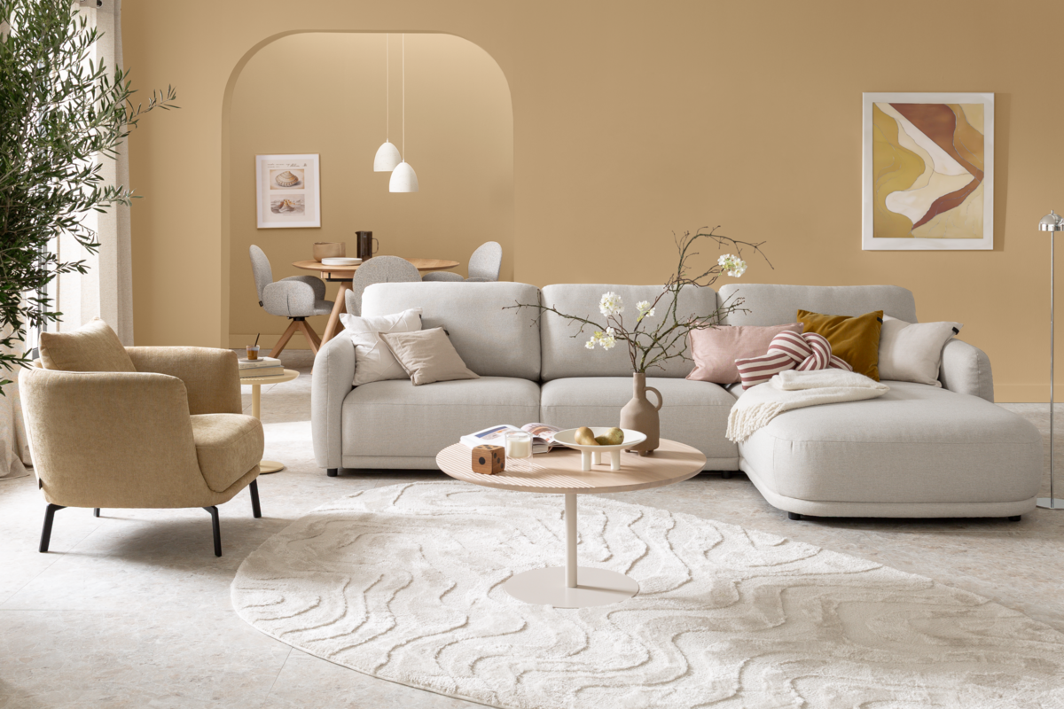 Die Farbfamilie der Brauntöne feiert in der Mode sowie im Interior-Bereich ihr starkes Comeback. Besonders Beige-Braun gewinnt zunehmend an Bedeutung. Gemeinsam mit den Experten der SCHÖNER WOHNEN-Redaktion haben wir Macchiato zur Trendfarbe des Jahres 2026 gekürt. Mit Macchiato, den wir schon seit vielen Jahren als Juwel in unserem Sortiment führen, präsentieren wir den perfekten Ton dieser Entwicklung.